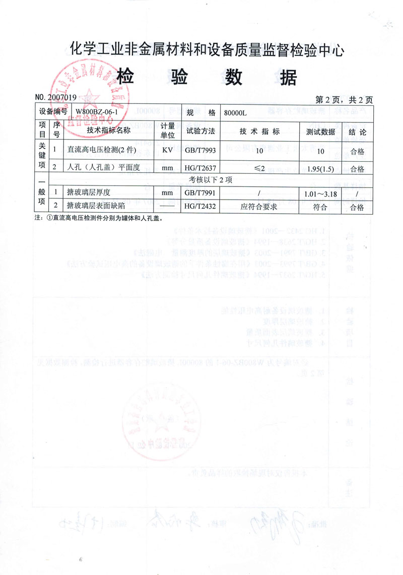 • 搪玻璃設備合格檢驗報告